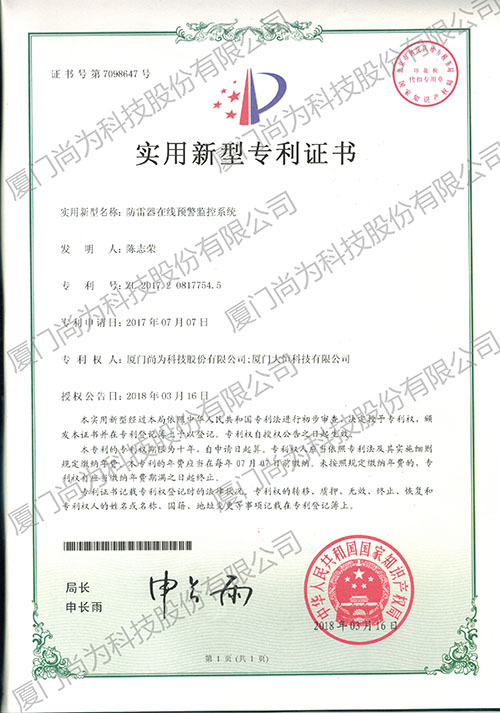 專(zhuān)利一:防雷器在線預(yù)警監(jiān)控系統(tǒng)